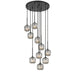 The Bobo 10 Pendant Light is the showpiece of the Bobo collection, offering a dramatic blend of early-century elegance and minimalist design. With ten ribbed barrel glass shades arranged in a round formation, this fixture delivers bold style and warm ambiance. Designed to shine with LED twinkle globes, it enhances the texture of the ribbed glass while creating a soft, layered glow. Available in antique gold with opal matt or black with smoke glass, it’s a stunning choice for large living areas, stairwells, or statement-making entrances.