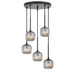 The Bobo 5 Pendant Light blends early-century elegance with modern sophistication. Featuring five ribbed barrel glass shades arranged in a circular formation, this pendant makes a bold yet graceful statement in any interior. Ideal for use with LED twinkle globes, the textured glass comes to life, casting soft, ambient light. Available in black with smoke glass or antique gold with opal matt, it’s perfect for entryways, dining areas, or living spaces seeking a refined, sculptural element.