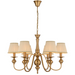 The Siedel 6 Pendant Light with shade showcases elegant French Provincial design, finished in polished copper and paired with six soft fabric shades for a warm, diffused glow. Ideal for larger dining areas, living rooms, or grand entryways, this fixture balances vintage charm with practical functionality. Its classic profile and high-quality materials make it a refined choice for both traditional and transitional spaces.