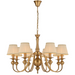 The Siedel 8 Pendant Light with shade is a striking centerpiece that captures the elegance of French Provincial design. Featuring a polished copper finish and eight gracefully curved arms, each adorned with a soft fabric shade, this fixture delivers warm, ambient light with timeless style. Ideal for large dining rooms, double-height foyers, or open-plan living areas, it’s crafted to elevate both traditional and transitional interiors.
