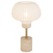The Vybor table lamp offers warm, ambient lighting perfect for bedrooms, living rooms, or styled shelving. Crafted from natural travertine with a textured fabric shade in soft neutral tones, it brings sculptural presence and organic warmth to modern interiors.
