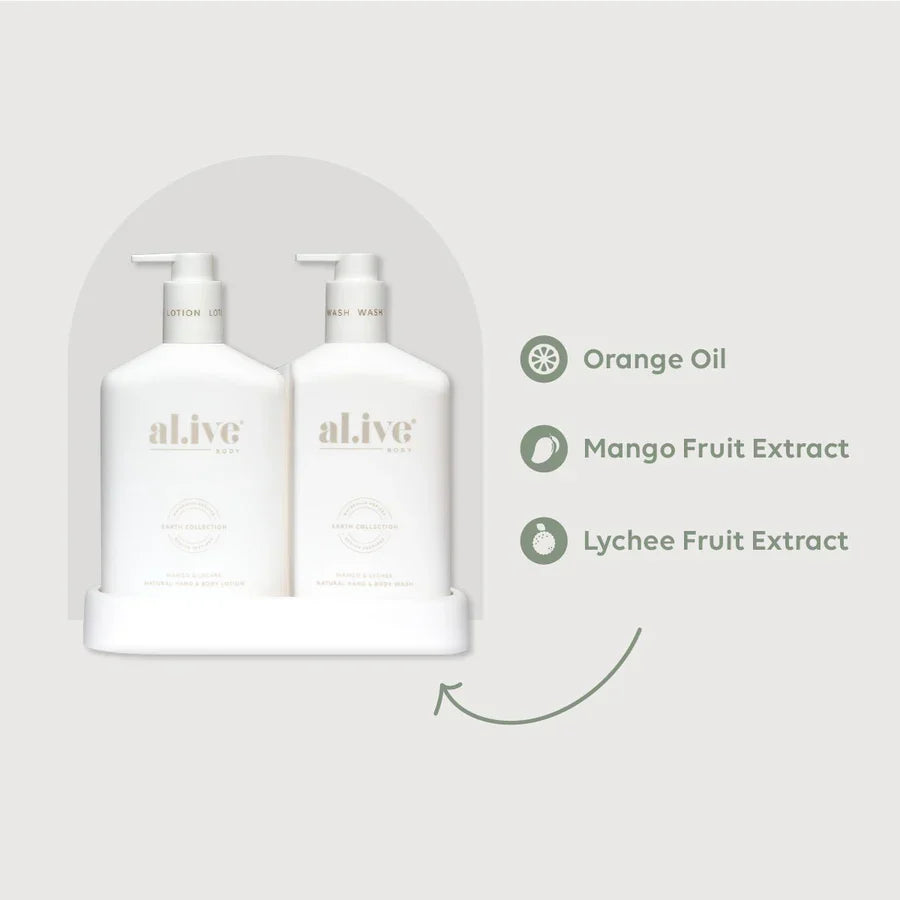 The Al.ive Body Earth Collection contains no palm oil, no mineral oil, no parabens, no SLS/SLES, no phthalates, no silicones, no cocamide DEA, no synthetic dyes, no propylene glycol, no harsh detergents, no PEGS or EDTA, and no animal testing.